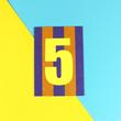„Zahl 5“ dunkelblau/braun mit neongelber Zahl
