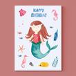 Postkarte Meermädchen "Happy Birthday"