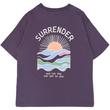 - Aufdruck auf der Brust mit stilisiertem Sonnenuntergang und Schriftzug